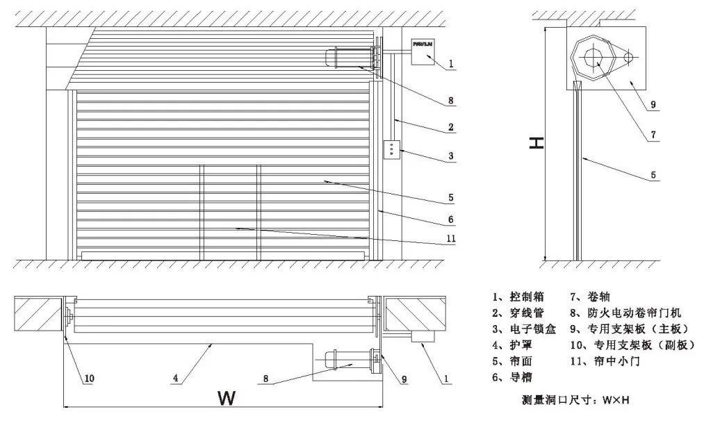 防火卷簾由簾面、導(dǎo)軌、座板、門(mén)楣、箱體并配以卷門(mén)機(jī)和控制箱等結(jié)構(gòu)組成,