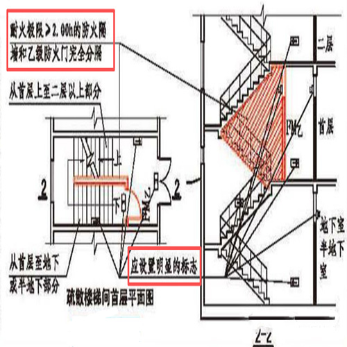 根據(jù)《建筑設(shè)計防火規(guī)范》(GB 50016-2014,2018 年版)6.4.4條第3款:建筑的地下或半地下部分與地上部分不應(yīng)共用樓梯間,確需共用樓梯間時,應(yīng)在首層采用耐火極限不低于2.00h的防火隔墻和乙級防火門將地下或半地下部分與地上部分的連通部位完全分隔,并應(yīng)設(shè)置明顯的標(biāo)志。