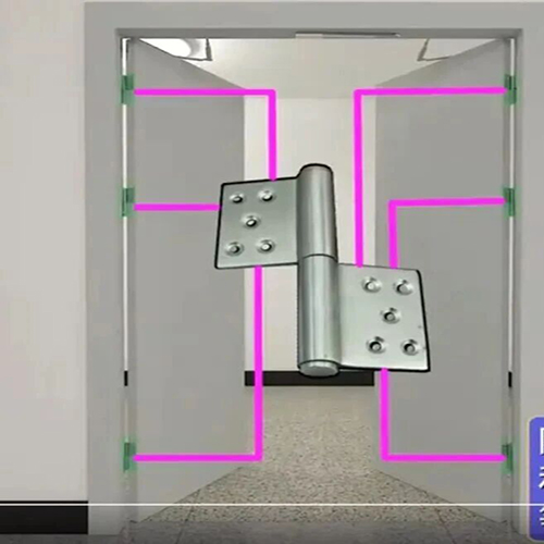 防火門的門扇垂直于地面,門扇與門框的由防火鉸鏈連接,其門扇的開啟和關(guān)閉以鉸鏈為軸,門扇只能向單一方向旋轉(zhuǎn)。